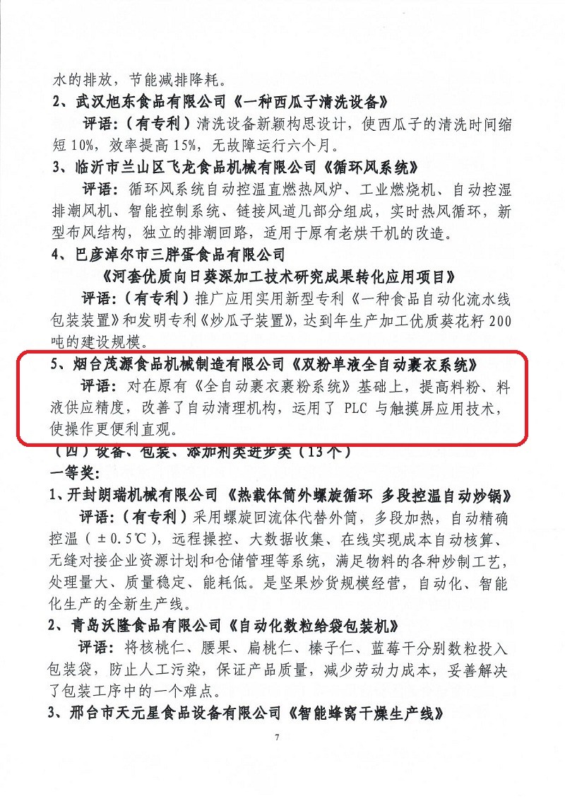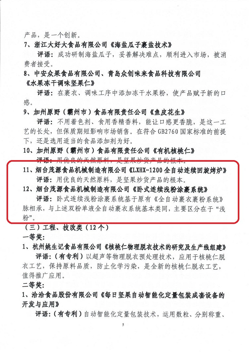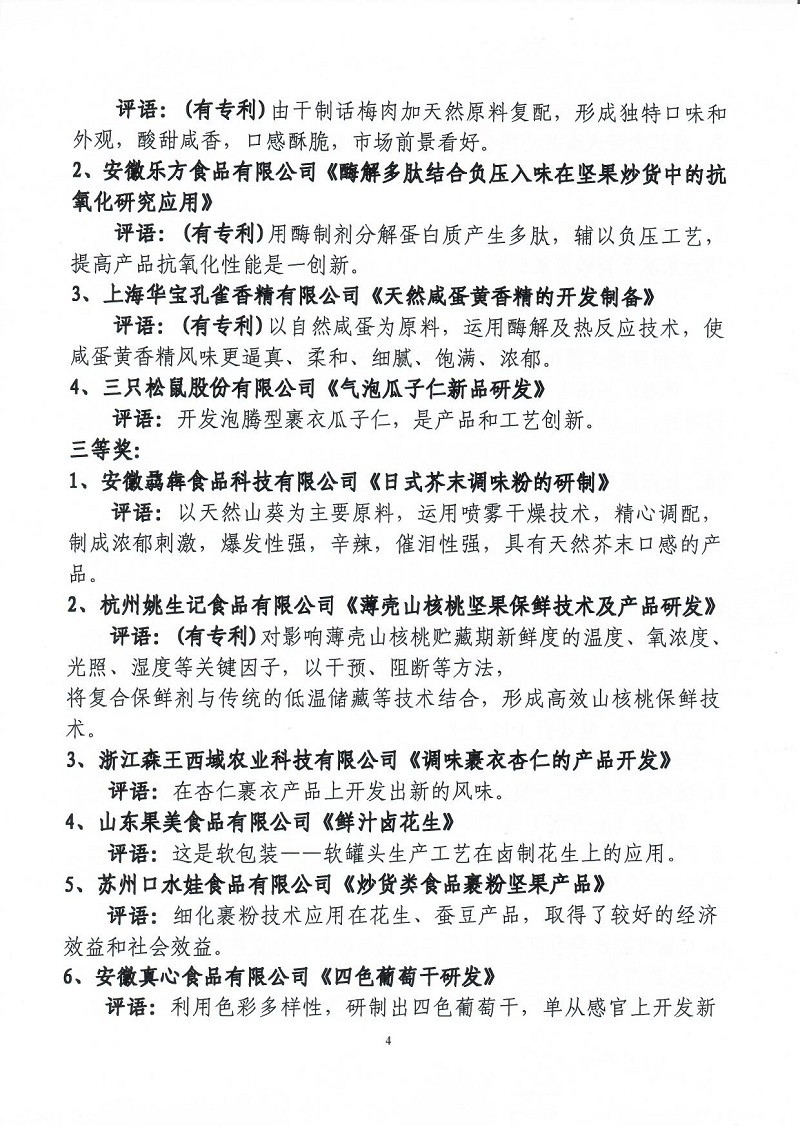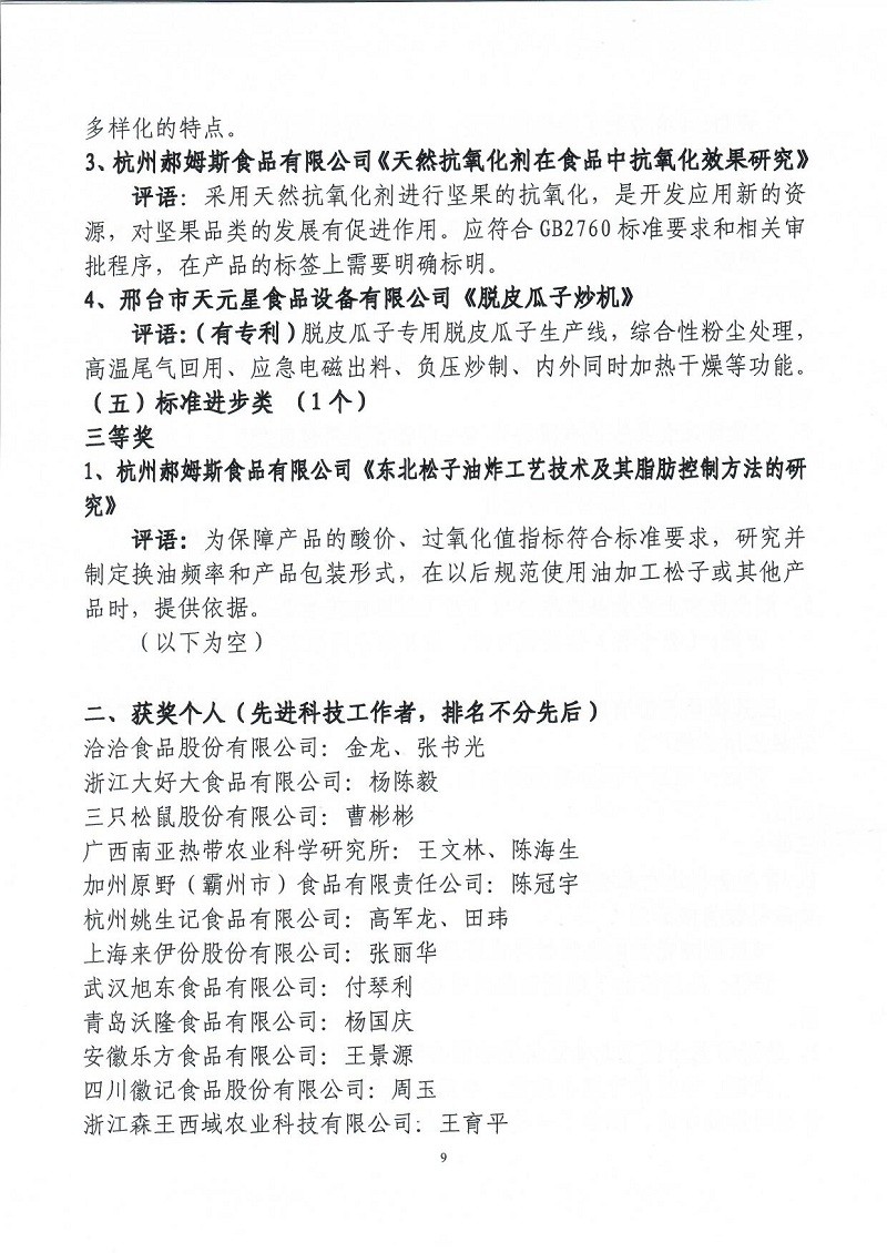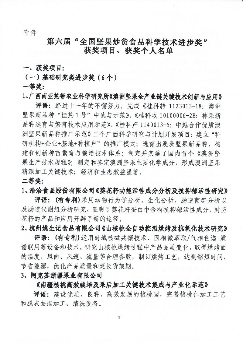 關(guān)于表彰第六屆(2018-2019年度)全國(guó)堅(jiān)果炒貨食品行業(yè)科學(xué)技術(shù)進(jìn)步獎(jiǎng)的通知