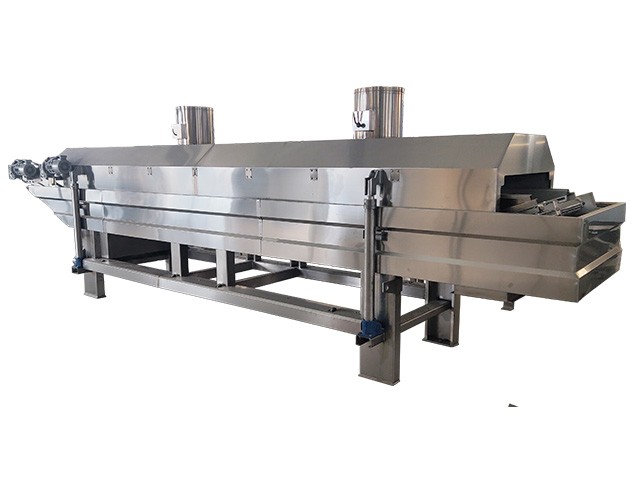 網帶式連續(xù)油炸機主要用于油炸青豆、蠶豆、裹衣類花生、蠶豆瓣、青豆等,具有產量大、自動化程度高、產品質量穩(wěn)定等特點。